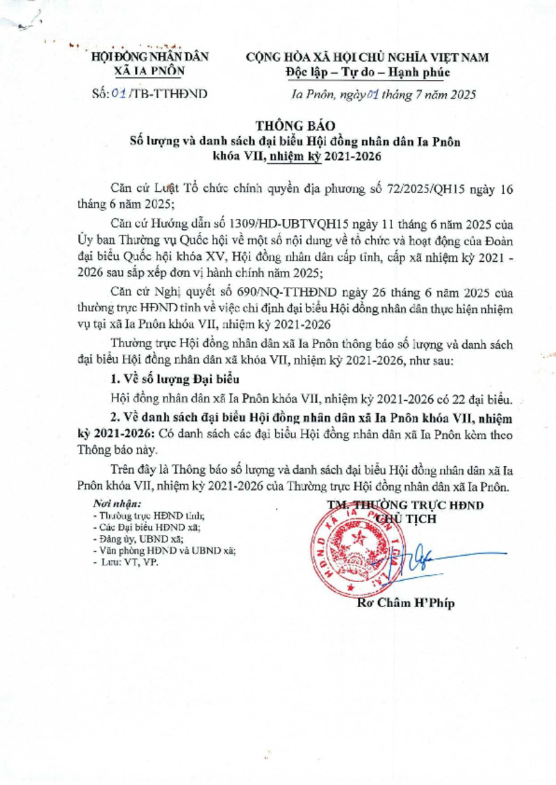 Thông báo số lượng và Danh sách đại biểu HĐND xã Ia Pnôn, nhiệm kỳ 2021 - 2026 17/10/2025, 14:29:01 - Lượt xem: 4 Tweet Thêm vào danh sách Báo xấu Thông tin tài liệu Thông báo số lượng và Danh sách đại biểu HĐND xã Ia Pnôn, nhiệm kỳ 2021 - 2026